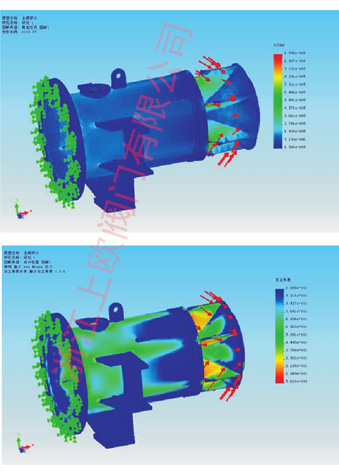 錐形放散閥通過改變調節套筒與錐體之間的過流面積,實現對流量的控制,使閥門在任意開度下自由排放均能將氣蝕和振動控制在最低狀態。錐體通過科學的流體設計,采用 COSMOSWorks結構分析軟件確定閥門應力分布,采用先進的FLUENT流體專用分析軟件進行測試,使過流面的變化與調節套筒的移動形成線性對應關系,實現全行程的良好調節性能。錐體通過多塊流線形肋板固定于閥體上,使該閥與其它常規消能閥相比,顯著降低或消除閥門運行時的汽蝕與振動,并使閥門操作力矩達到最低。閥門關閉時,調節套筒與錐體前端的錐形閥座形成一個金屬對金屬和金屬對橡膠的軟硬雙重密封,保障閥門零泄漏。開閥時,排出的水流形成一個寬的錐角噴射到大氣中,并且被分解成細密的飛沫。如果噴射流形狀需要控制,在閥門出口端可添加一個充氣整流罩,不但允許空氣混合到水中防止管壁真空的產生,而且還能形成集中的水流形狀。