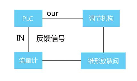 2、將流量計輸出反饋信號送入PLC處理,經PLC預設值比較后輸出相應控制信號給調節執行機構,并驅動閥門運轉至對應位置(閥門開度)。