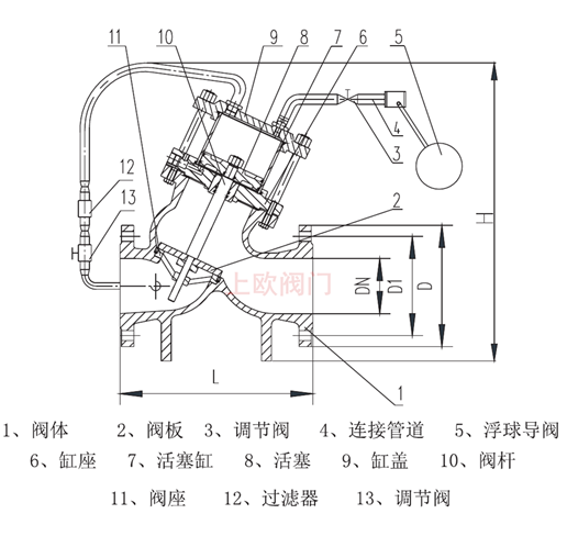 b. 除浮球定水位閥外,其他形式浮球閥由主閥和浮球?qū)чy組成,主閥和導(dǎo)閥可遠(yuǎn)程分離安裝,具有遙控功能;