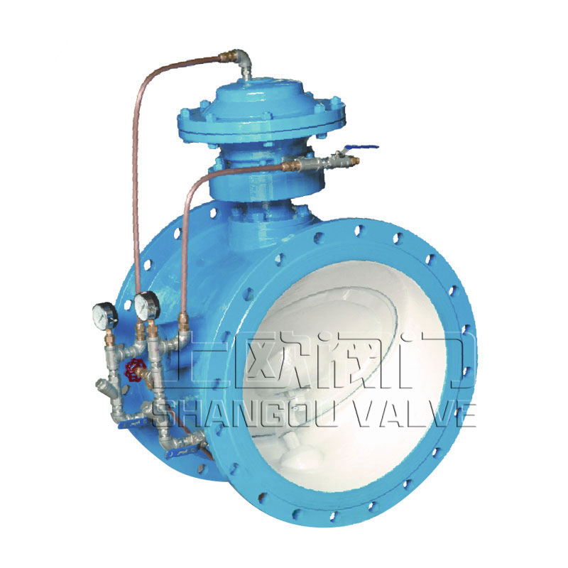 9、適應性強:產品有膜片式與活塞式分別適用于各類工況與介質。外控組件中的特殊過濾器能有效過濾污水中的雜質顆粒,保證進入膜片腔或活塞缸內介質為清潔液體,該過濾裝置具有自沖洗功能,旁通進口端設有排渣裝置,可手動定期排渣。調節型可根據工況要求,采用手動或者電動控制開度進行流量調節。