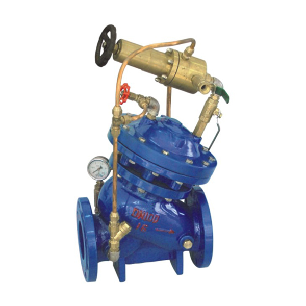 本產品由主閥和調節閥及接管系統組成,閥體采用直流式閥體,主閥控制室為膜片式或活塞式的雙控制室結構,控制室比一般水力控制閥增加了一個,增加了對主閥的控制功能,實現了對水泵出口的緩慢開啟、全開、緩閉、截止等多功能控制,實現了一個閥門、一次調節對水泵出口的多功能控制。 本產品的接管系統采用調節閥控制,通過設定調節閥的開度,可方便實現需要的各項控制參數,如主閥的開啟速度、緩閉速度等等。